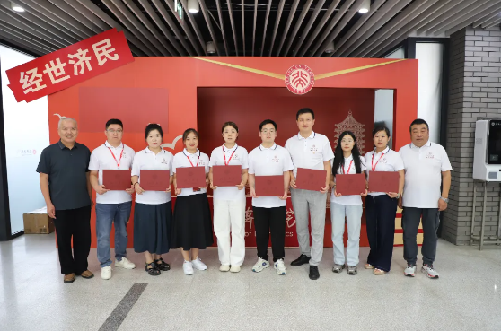 在結業典禮上,北京大學經濟學院黨委書記崔建華教授高度肯定了大家在研修班期間的積極表現與學習成果。他指出,研修學習不僅是企業發展源源不斷的動力,更是每一位奮斗者突破自我、實現蛻變的階梯。崔書記通過一個個生動案例,詮釋了終身學習的重要意義,并指出世紀福鑫正站在“健康中國”戰略的歷史節點上,既肩負使命,也迎來機遇。他勉勵學員以此次北大之行為起點,將所學所思化為行動之力,于時代浪潮中奮楫爭先,開創未來。千里之行,始于足下;啟航北大,逐夢未來,世紀福鑫全體學員以優異表現圓滿完成本次研修課程。崔書記與賈總共同為學員頒發北京大學結業證書,一紙證書,不僅記錄成長,更鐫刻著責任與擔當。典禮現場,學員們歡聚一堂,合影留念,定格這一激動人心的榮耀時刻。每一個笑容都映照著成長的足跡,每一次快門都是對夢想的有力見證。