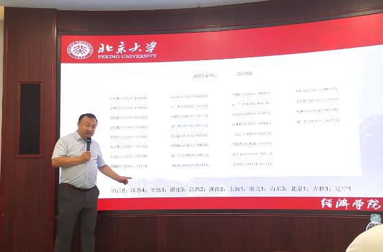 北京大學經濟學院副院長張亞光副教授首先為大家帶來院史講座,他以“燕園風物與經世長情”為主題,娓娓道來百年學府的厚重積淀與精神傳承。他從北大的發展脈絡切入,追溯嚴復等歷任校長的治學風范,深刻講述北大紅樓在中國近現代史中的紅色地位,展現北大始終與民族命運同頻共振的家國情懷。講座最后,他系統梳理了經濟學院從1912年創設經濟學到1985年獨立建院的發展軌跡,特別提及馬寅初、厲以寧等大師的卓越貢獻,勾勒出一幅“經世濟民、學術報國”的恢宏畫卷。這不僅是一堂院史課,更是一場精神的洗禮與使命的喚醒。